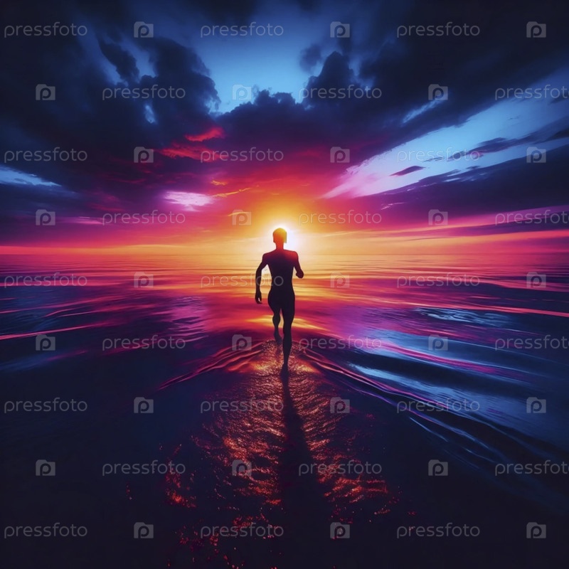 Силуэт заката солнца на берегу, Ай создал изображение