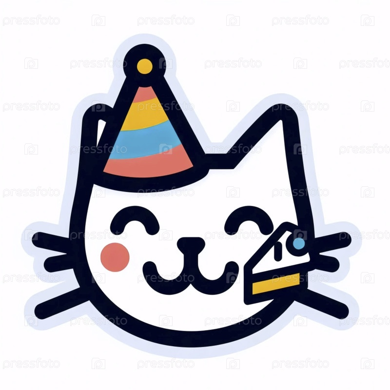 Минималистическое кошачье лицо с партийной шляпой и кусочком торта, Ai generated image
