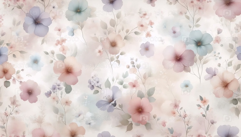 Образец с деликатными акварельными цветами в пастельных тонах, Ai generated image