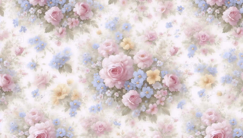 Бесшовный пастельный цветочный печат, Ai generated image