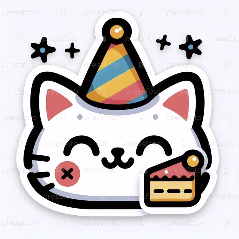 Минималистическое кошачье лицо с партийной шляпой и куском торта, Ai generated image