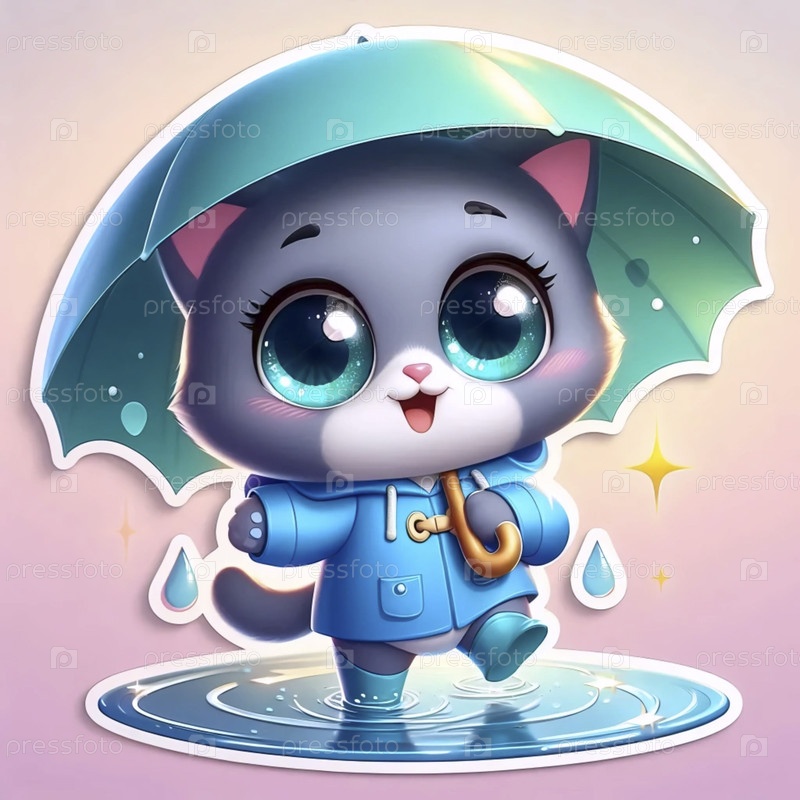 3D милая кошка под зонтиком наклейка, Ai generated image
