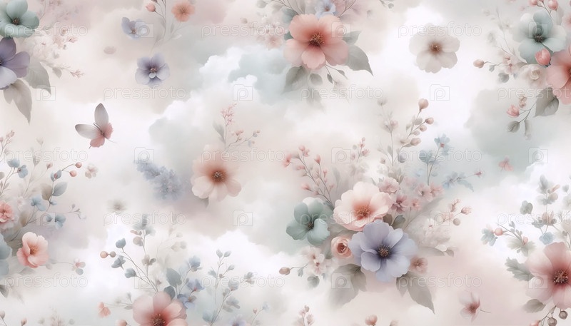 Образец с деликатными акварельными цветами в пастельных тонах, Ai generated image