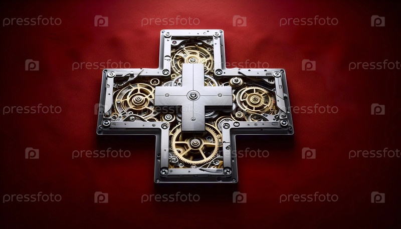 Швейцарский флаг сделан из механизмов роскошных часов, Ai generated image