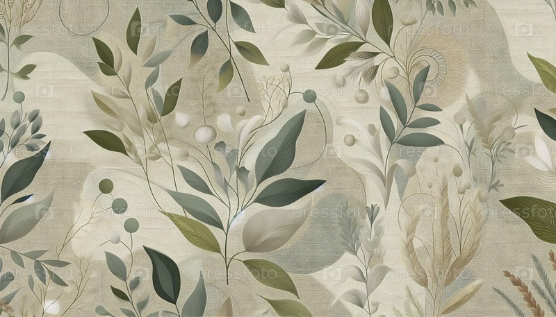Зеленый сальвий бежевый кремовые узоры бесшовного дизайна, Ai generated image