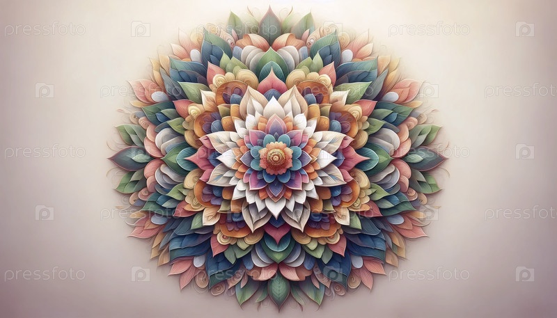 Цветовая мандала с листьями, Ai generated image