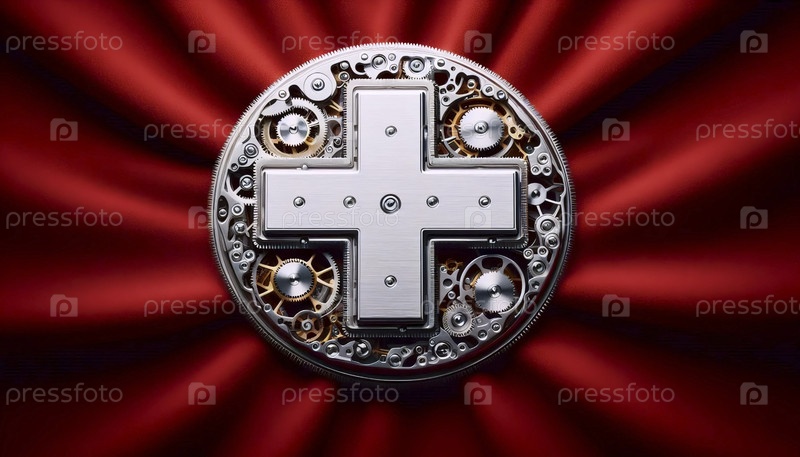 Швейцарский флаг сделан из механизмов роскошных часов, Ai generated image