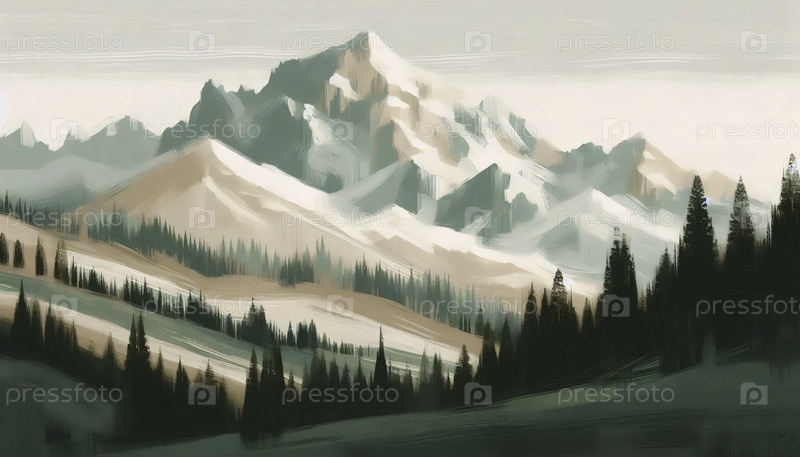 Текстированный художественный пейзаж горного ландшафта, Ai generated image