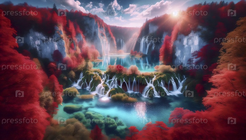 Хорватский флаг в водах Плитвицких озер, Ai generated image
