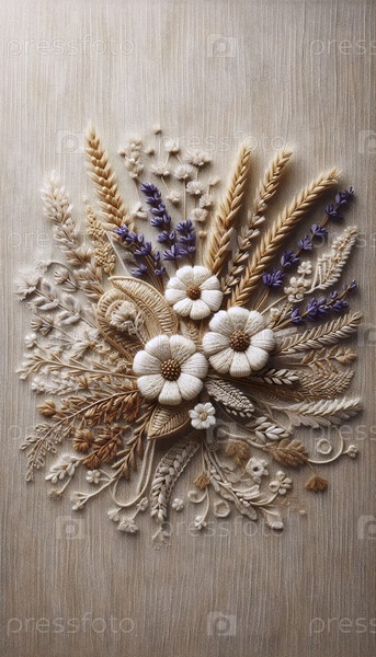 Ботаническое произведение искусства с вязанным узором, Ai generated image