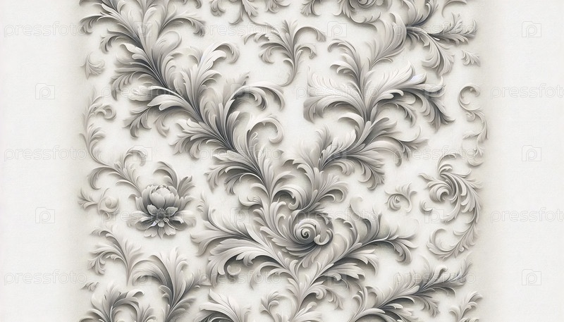 Простой бежево-серого цветочного дамасского бесшовного узора, Ai generated image
