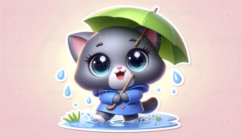 3D милая кошка под зонтиком наклейка, Ai generated image