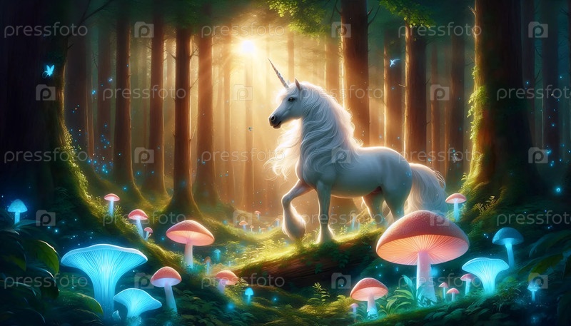 Единорог в зачарованном лесу, Ai generated image
