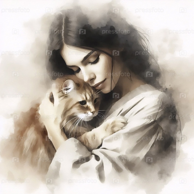 Художественный принт с портретом кота и его владельца, Ai generated image
