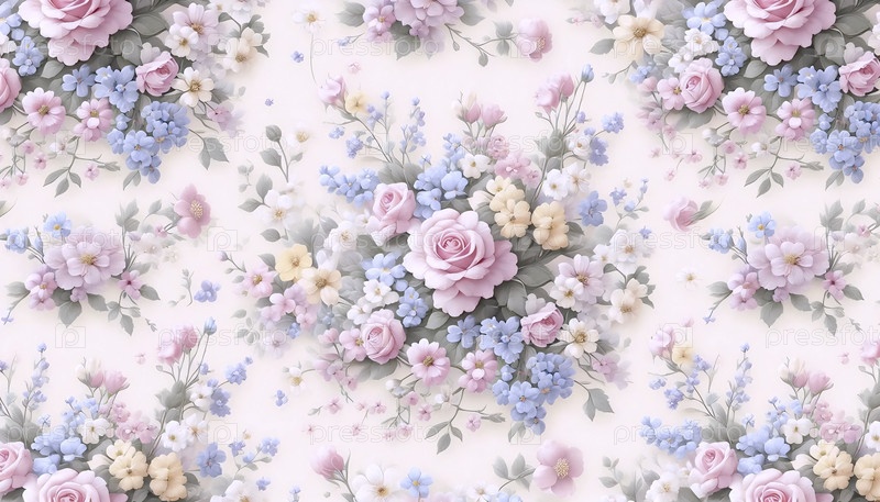 Бесшовный пастельный цветочный печат, Ai generated image