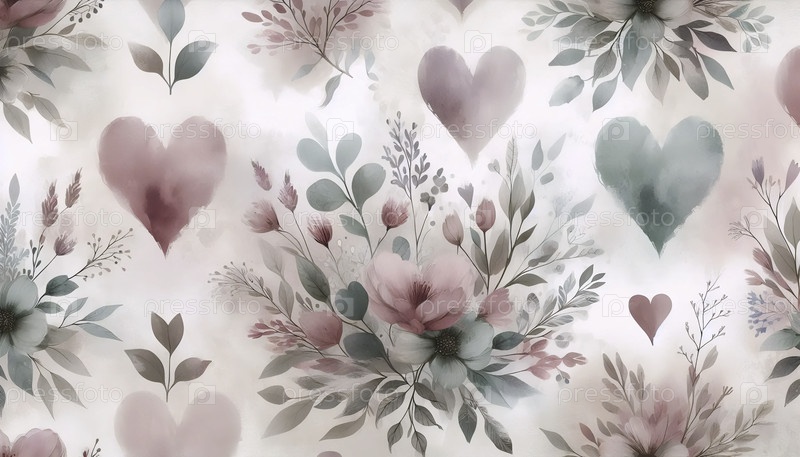 Водяной акварель кровоточащие сердца цветочный бесшовный рисунок, Ai generated image