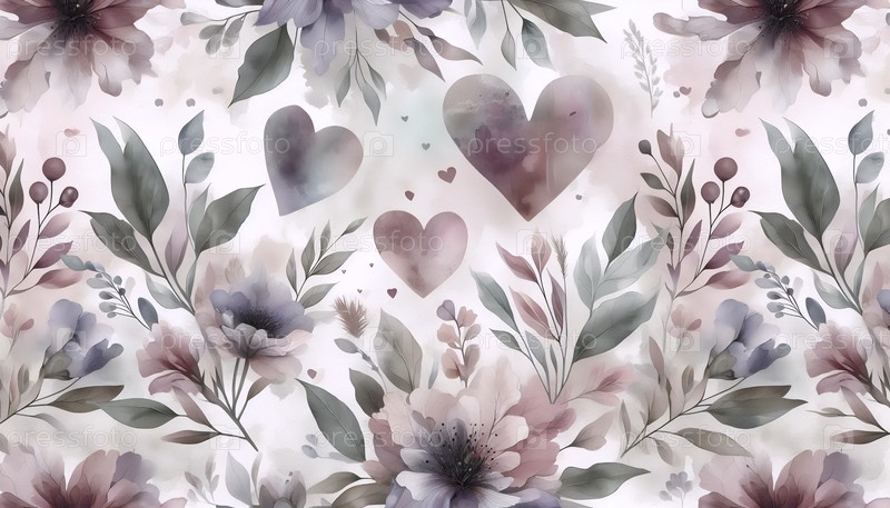 Водяной акварель кровоточащие сердца цветочный бесшовный рисунок, Ai generated image