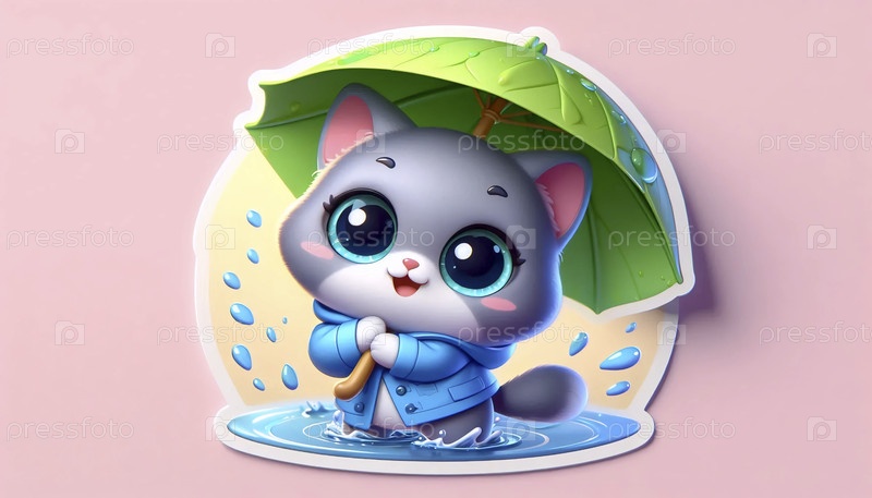 3D милая кошка под зонтиком наклейка, Ai generated image