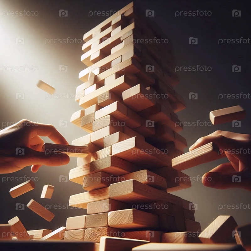 Игра Дженга с падающей башней, Ai generated image
