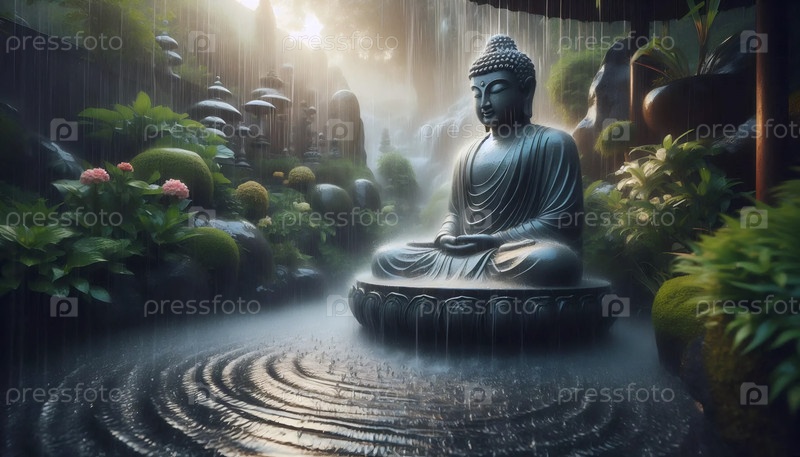 Буддийская медитация дождь, Ai generated image