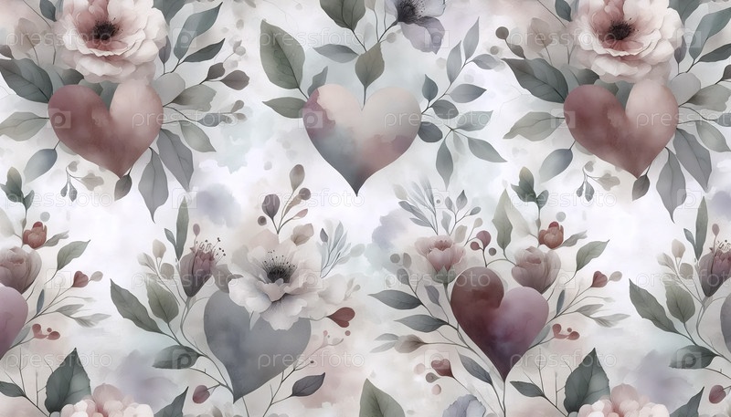 Водяной акварель кровоточащие сердца цветочный бесшовный рисунок, Ai generated image