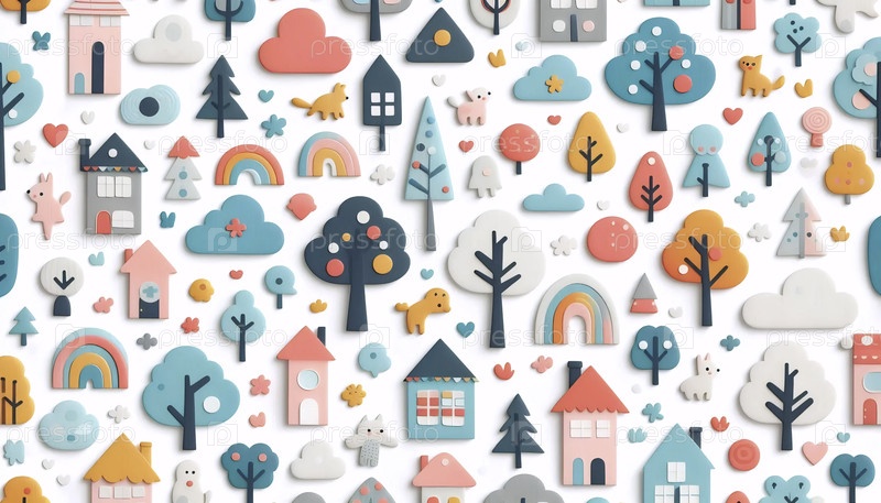 Причудливый окрашенный деревянные вырезки бесшовного узора для детей, Ai generated image