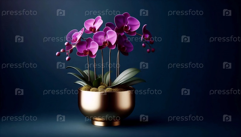 Фиолетовая орхидея в золотом горшке, Ай создал изображение