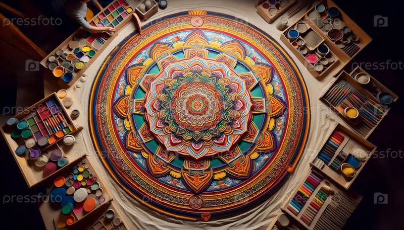 Песчаная мандала с геометрией, Ai generated image
