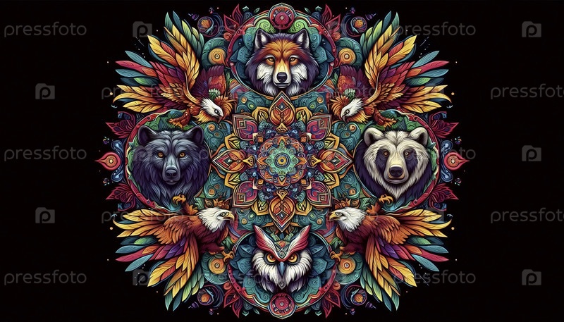 Мандала с тотемами животных, Ai generated image