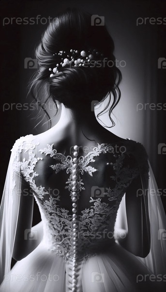 Винтажная невеста сзади в кольцевом платье, Ai generated image