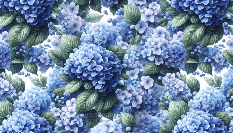 Голубая гидрензия Бесшовный цветочный рисунок, Ai generated image Синий гидрензия бесшовный цветной рисунок, создано изображение