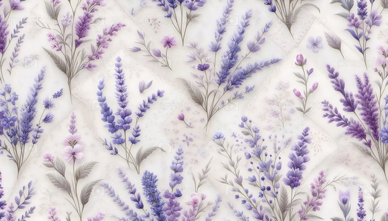 Лавандовый цветочный шаблон с фиолетовыми цветами мягкий для девочек ботанический, Ai generated image