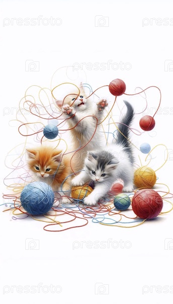 Кошки играют с шариками из пряжи детский сад фрески, Ai generated image
