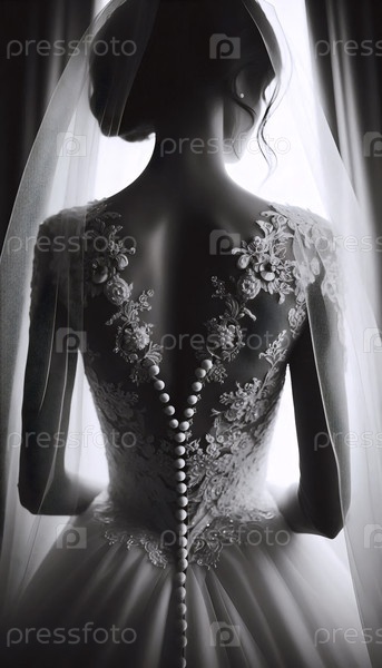 Винтажная невеста сзади в кольцевом платье, Ai generated image