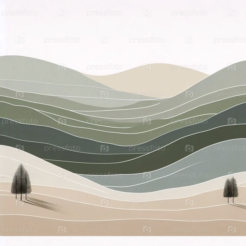 Современный горный пейзаж в нейтральных тонах, Ai generated image