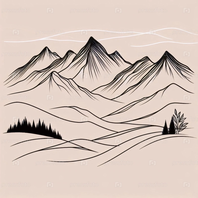 Минималистское линейное искусство горного хребта, Ai generated image