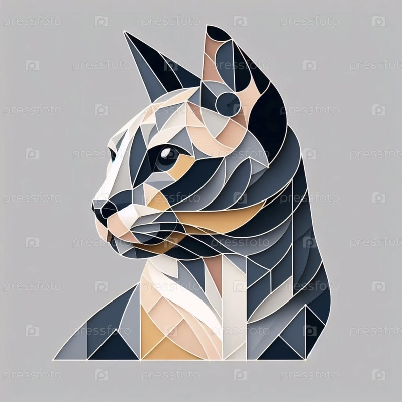 Геометрический портрет художественного принта кошки, Ai generated image