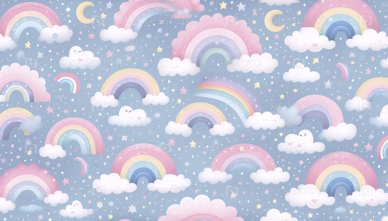 Радужный рисунок с причудливыми пастельными дугами и облаками, Ай создал изображение