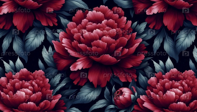 A red peony floral print seamless pattern, Ai generated image Красный пион цветочный печат бесшовные узоры, Ай создал изображение