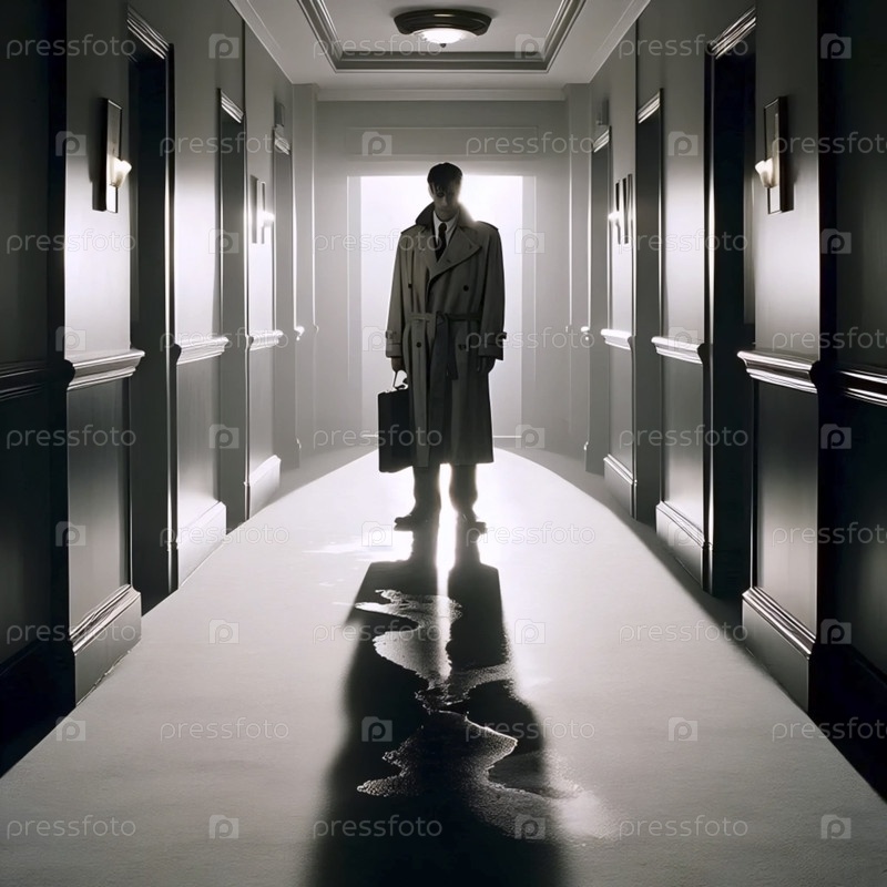 Черно-белый снимок нового мужчины в фойе отеля, Ай создал изображение