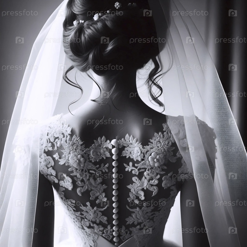 Винтажная невеста сзади в кольцевом платье, Ai generated image