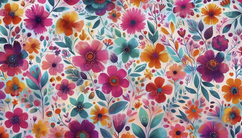 Красочный сад бохо акварель цветов цифровой бесшовный шаблон, Ai generated image