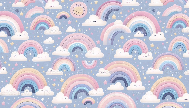 Радужный рисунок с причудливыми пастельными дугами и облаками, Ай создал изображение
