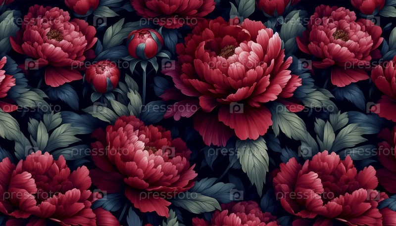 A red peony floral print seamless pattern, Ai generated image Красный пион цветочный печат бесшовные узоры, Ай создал изображение