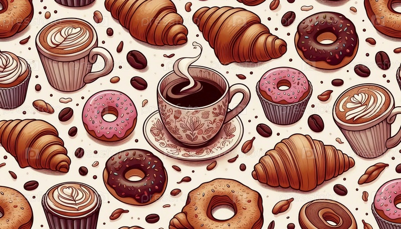 Капризный бесшовный рисунок кофе и кондитерских изделий, Ai generated image
