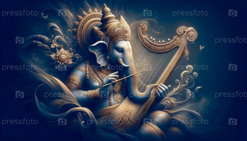 Господь Ганеша с арфовым инструментом, Ai generated image A