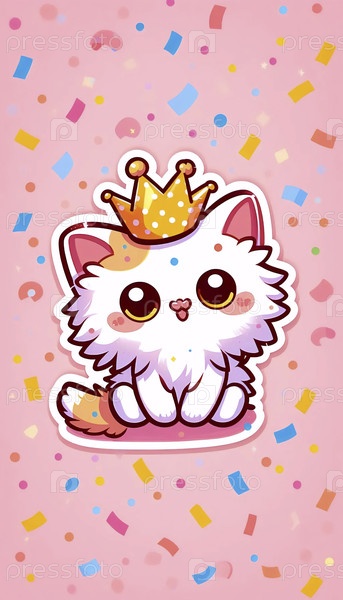 Милая наклейка котенка с бумажной короной, Ai generated image