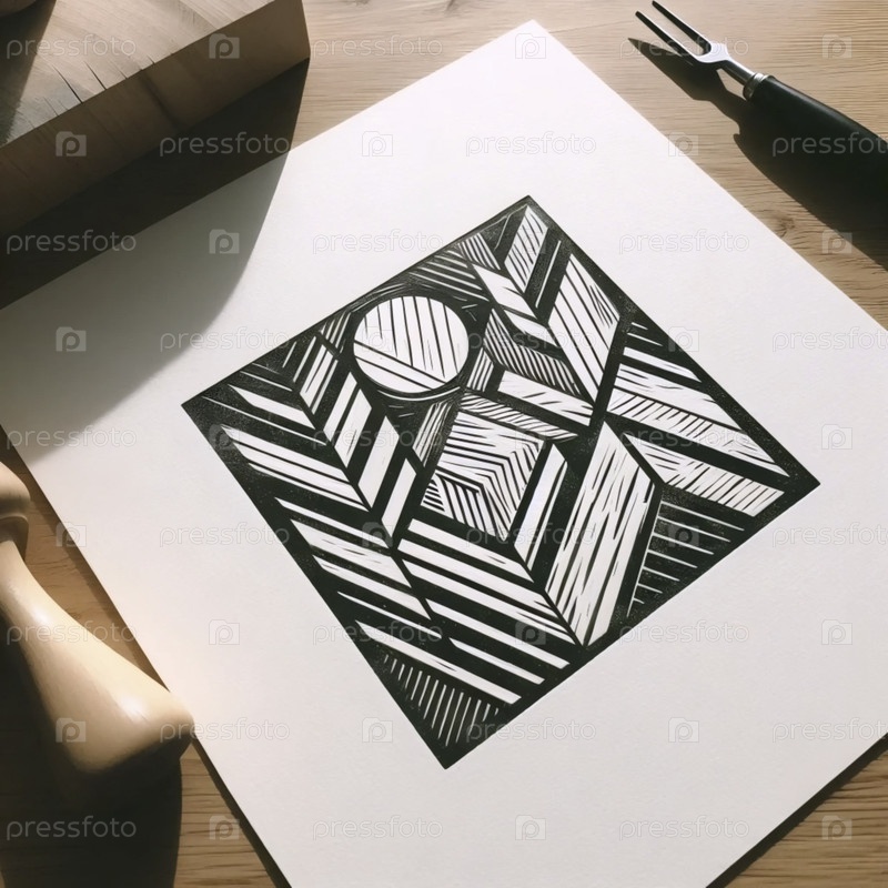 Современный линографический принт с геометрическими формами, Ai создал изображение
