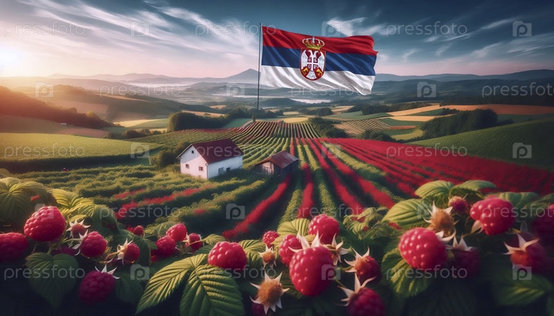 Сербский флаг в малиновом сельском хозяйстве, Ai generated image
