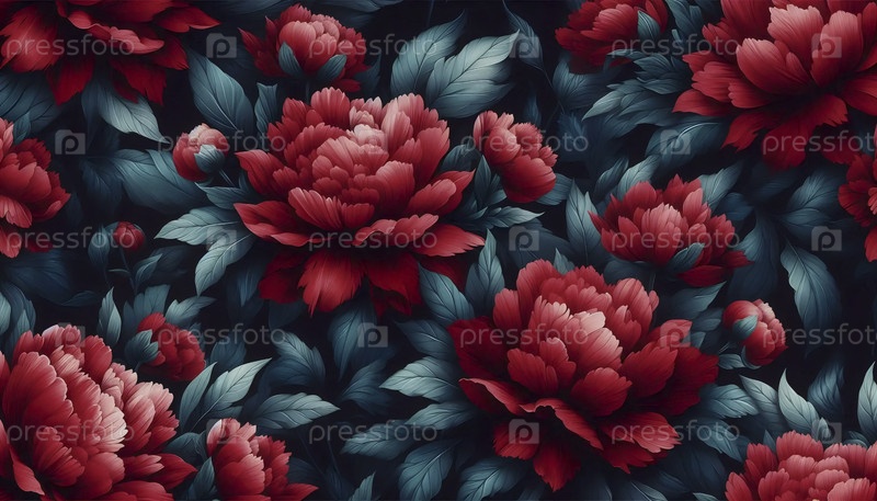 A red peony floral print seamless pattern, Ai generated image Красный пион цветочный печат бесшовные узоры, Ай создал изображение